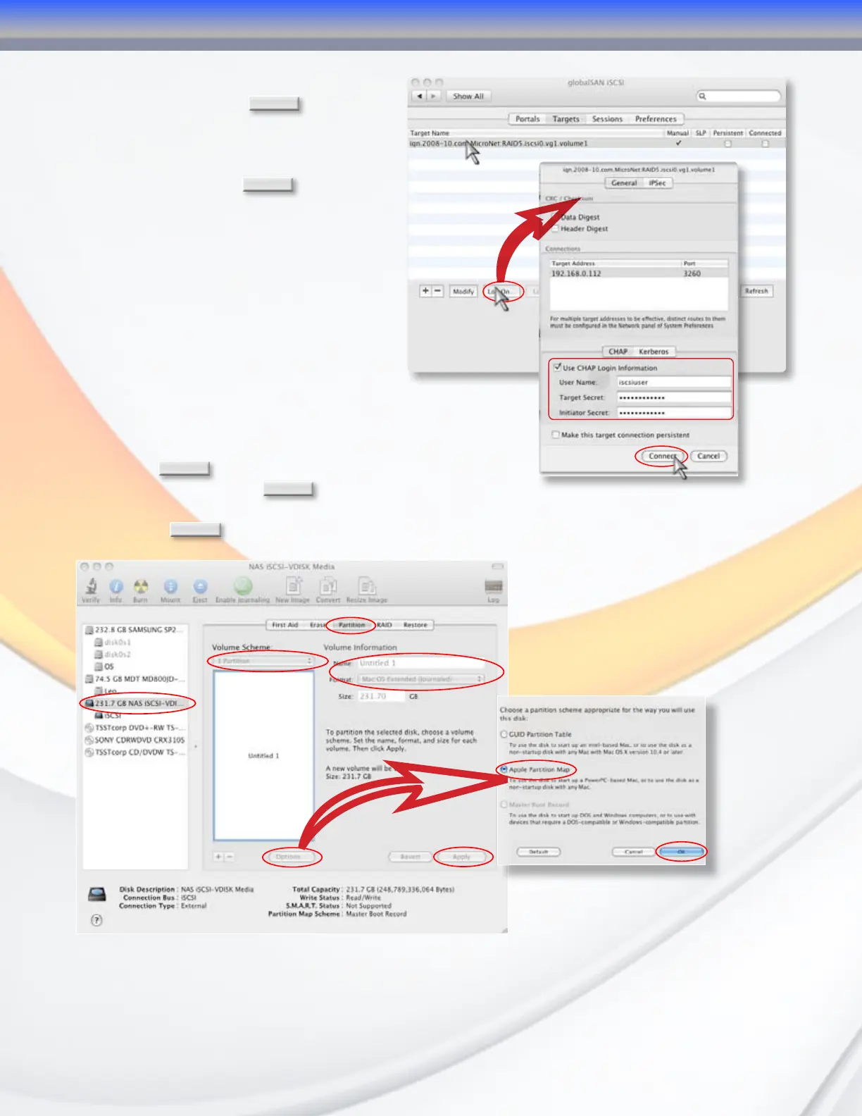 and password in the CHAP security area