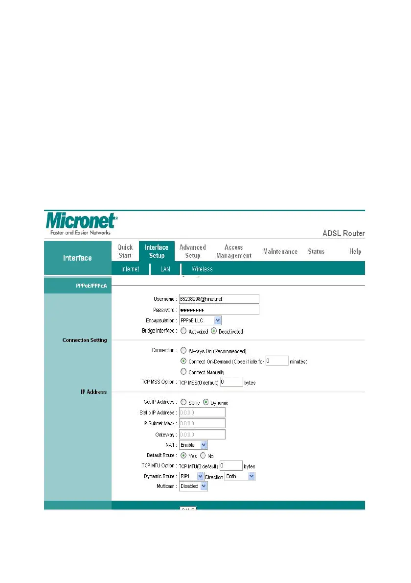 MicroNet SP3367A - 4.3 Interface Setup; 4.3.1 Internet