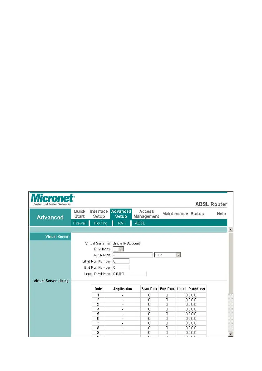 Go to Advanced Setup Æ NAT Æ Virtual Server to set virtual server as