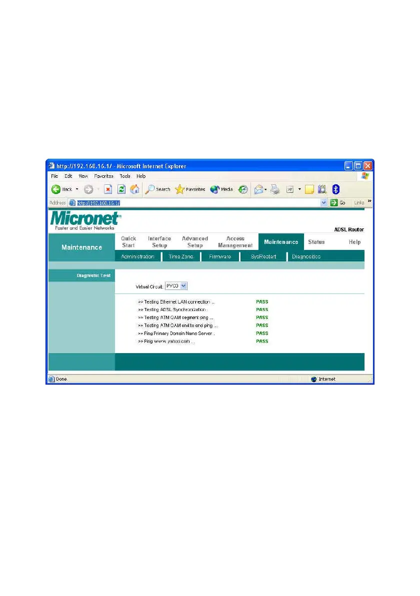 Note: 1) User ONLY can view PVC0’s Diagnostic Test connection.