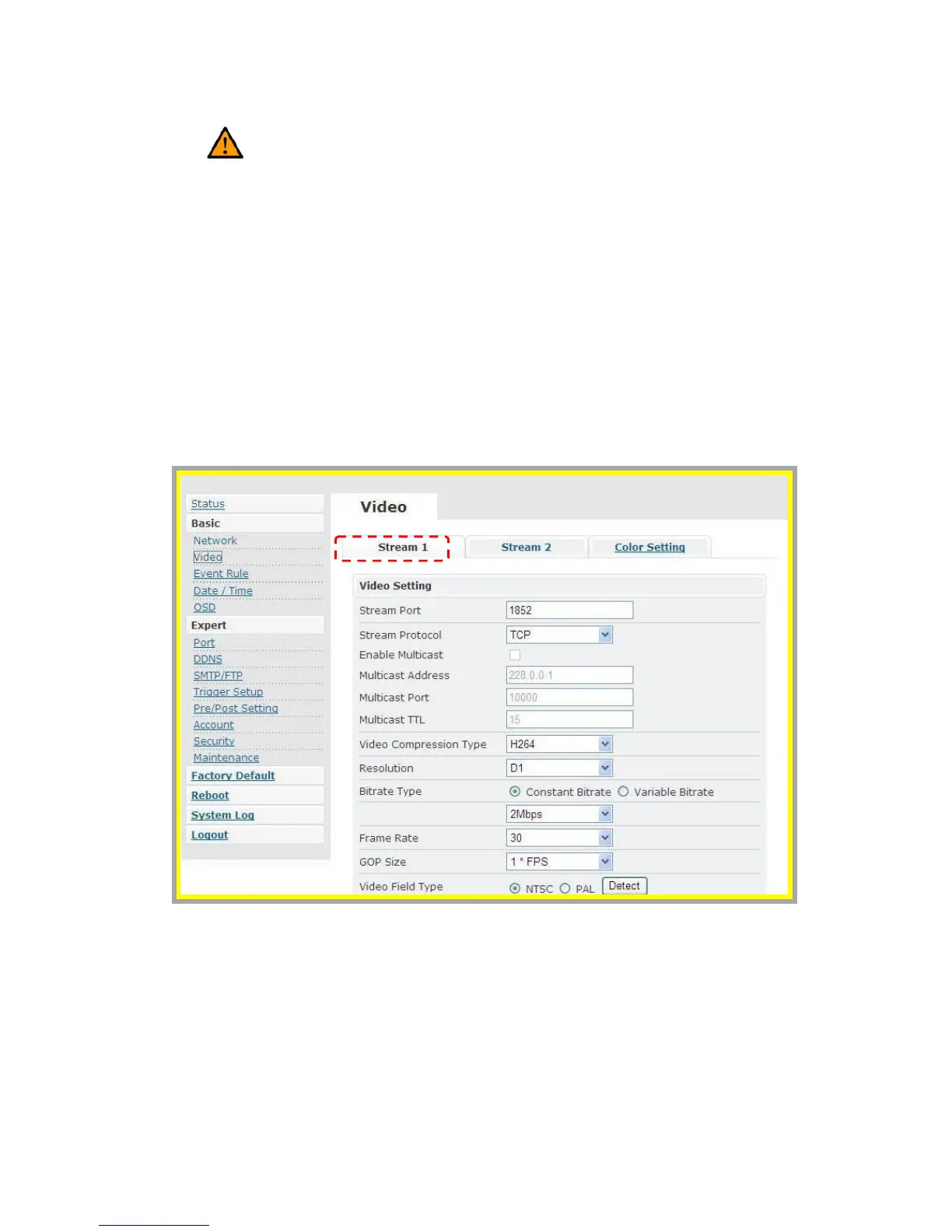 1. Stream Port: Stream 1 port value setting