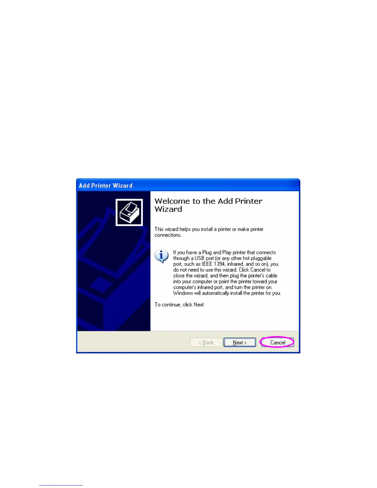 Step3. The “Add Printer Wizard” is displayed. Click “Next”.