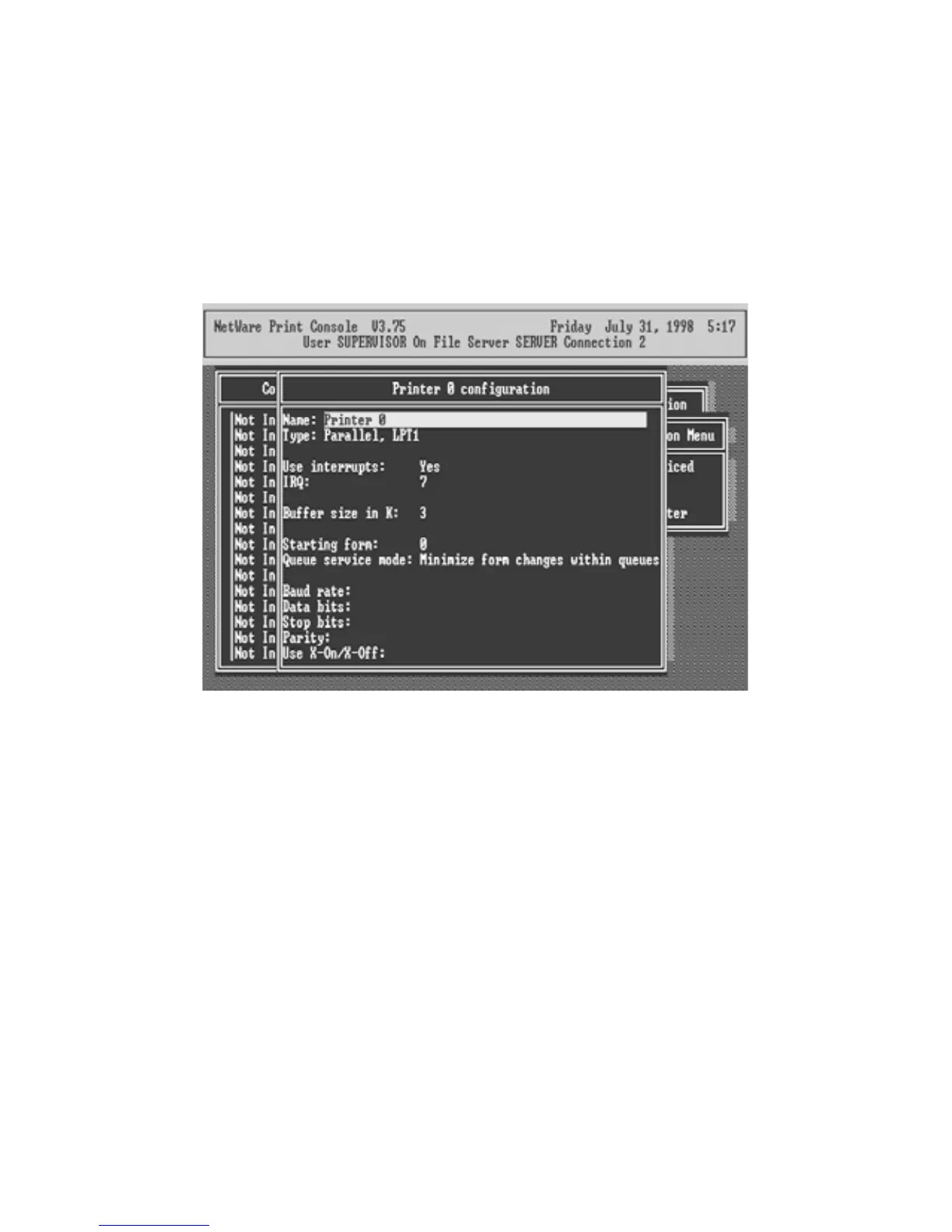 14. Select Queues Serviced by Printer, then select Printer 0 (or Printer 1,