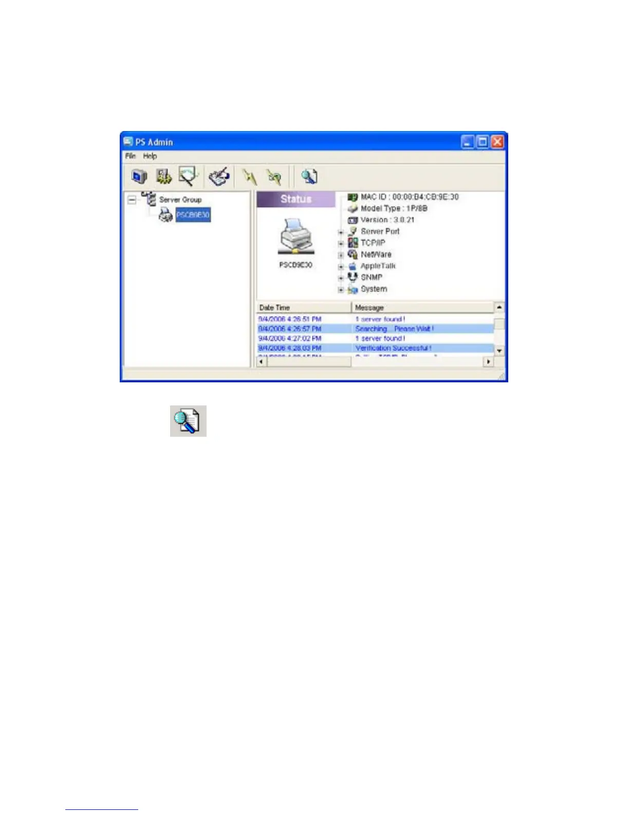 The system will, at the same time, display the selected print server’s