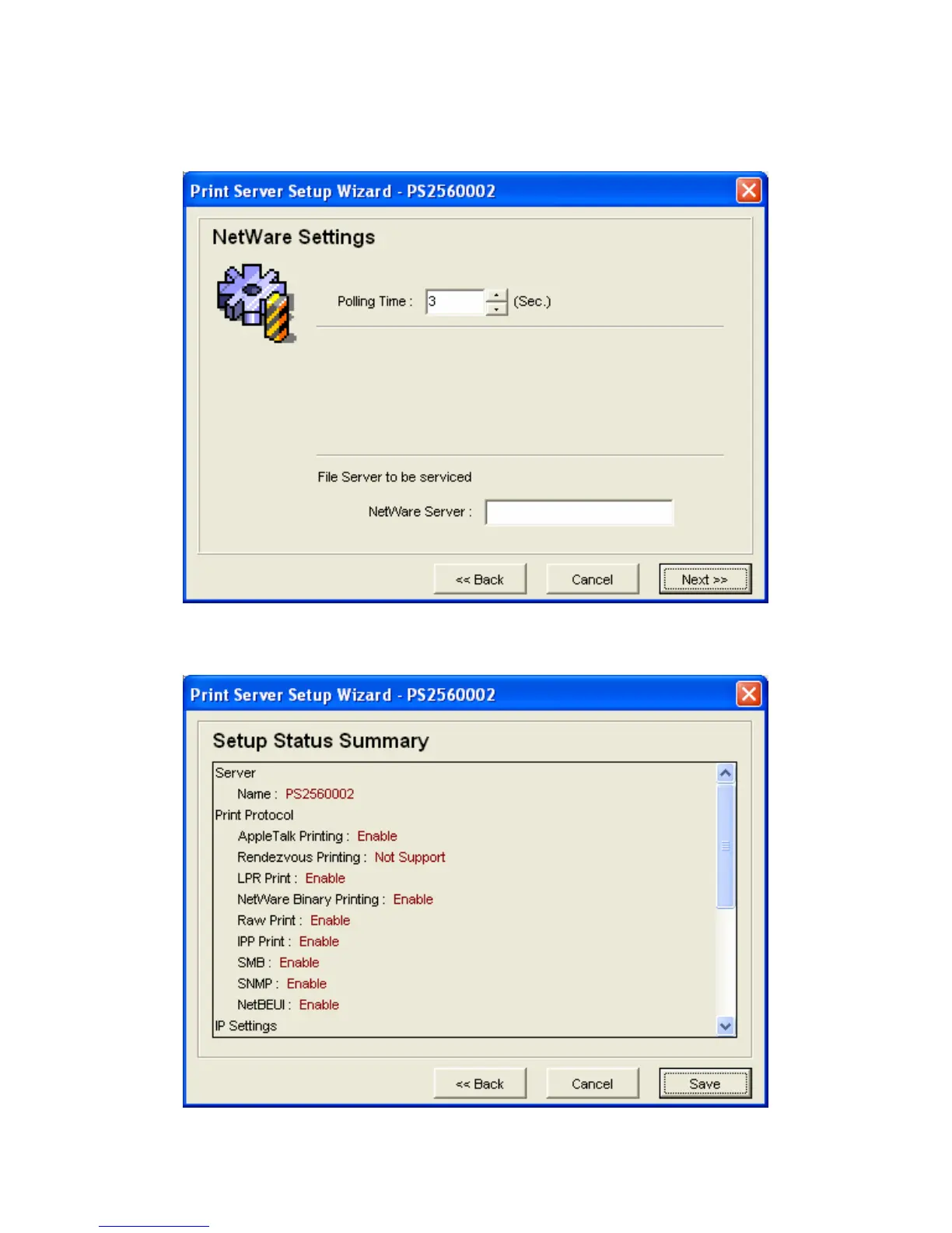 Step 5: Setup the NetWare printing. Please refer to section 7.7 for detail