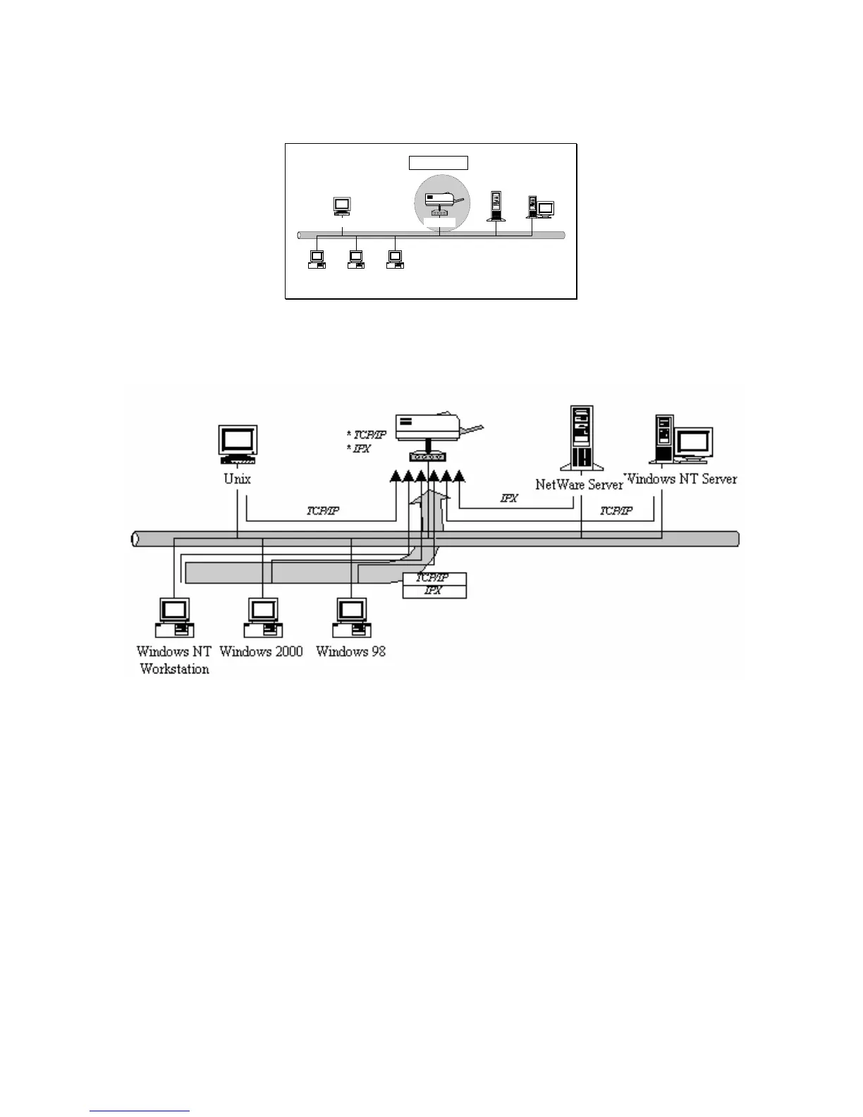 Because print server supports IPX/SPX, NetBEUI, TCP/IP and AppleTalk