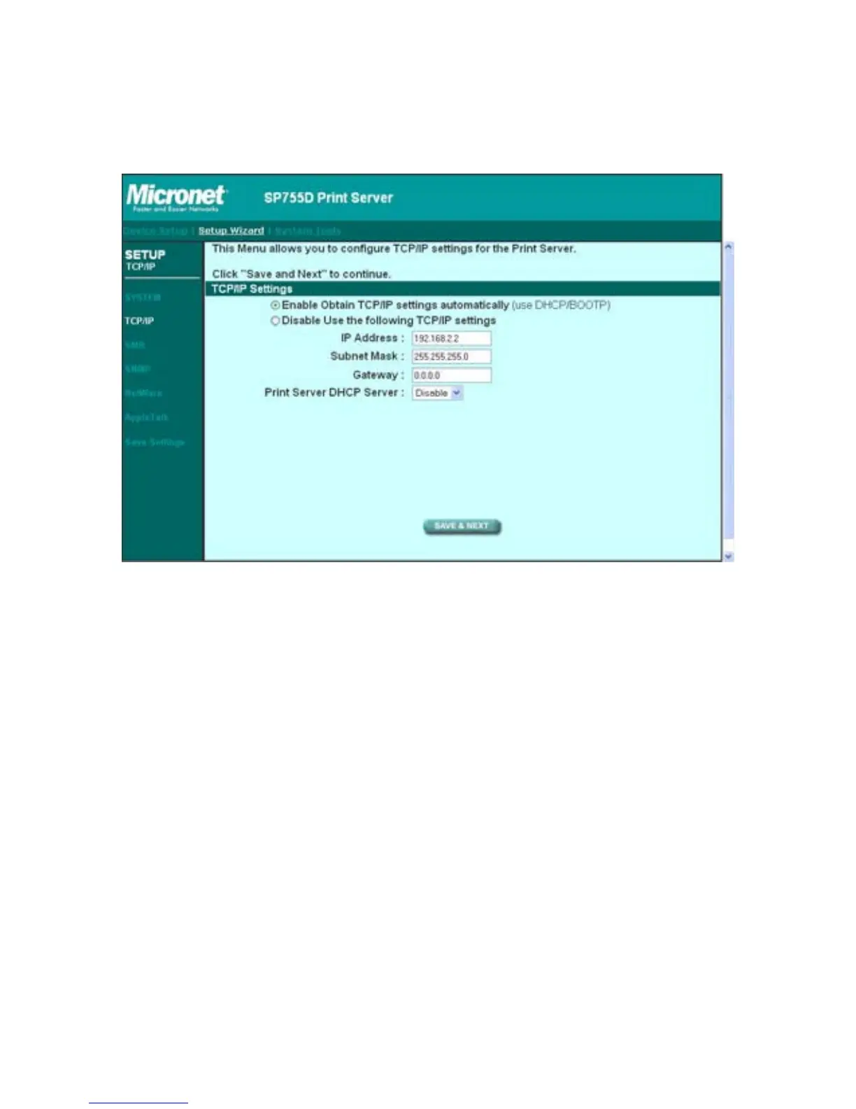 If you need the print server to automatically get an IP from DHCP server,