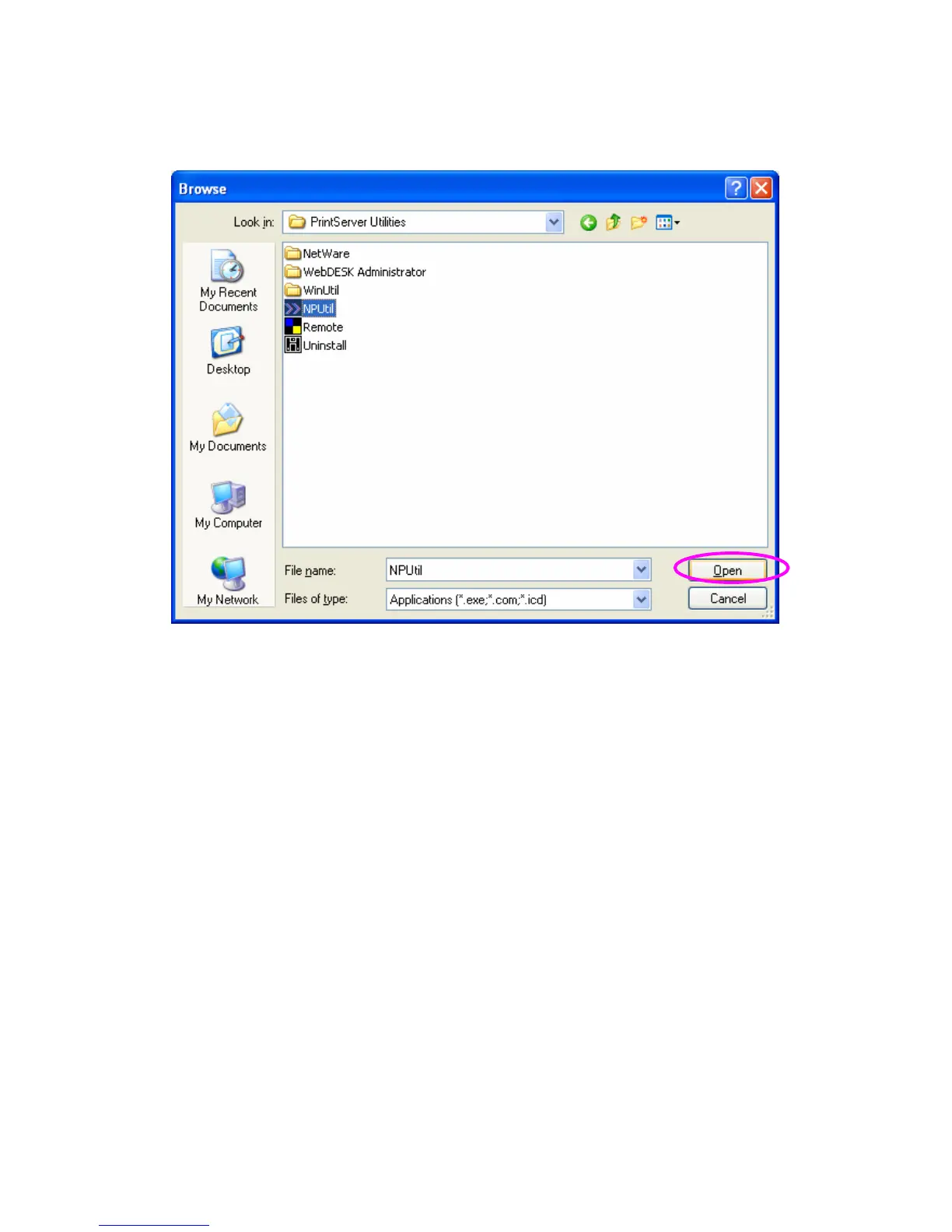 Step6. Open the “NPUtil” file from “C:\Program Files\PrintServer