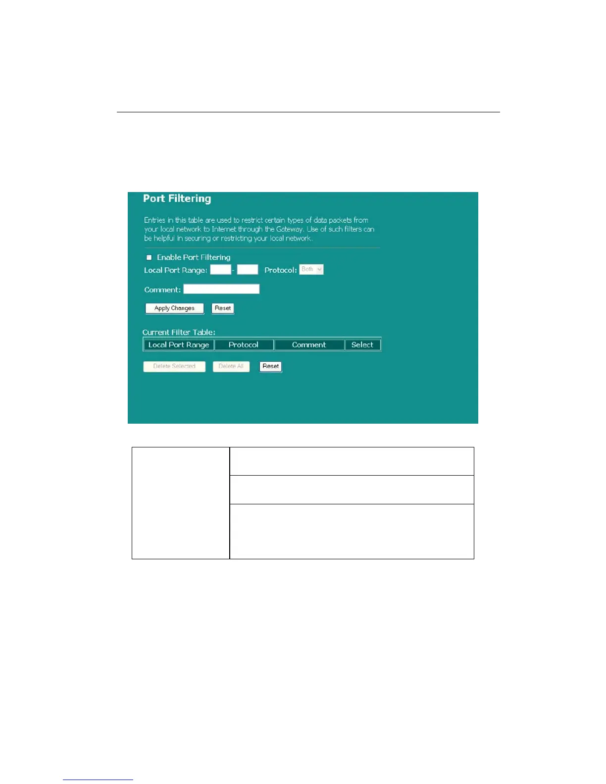 1. Click the check box of “Enable Port Filtering” to