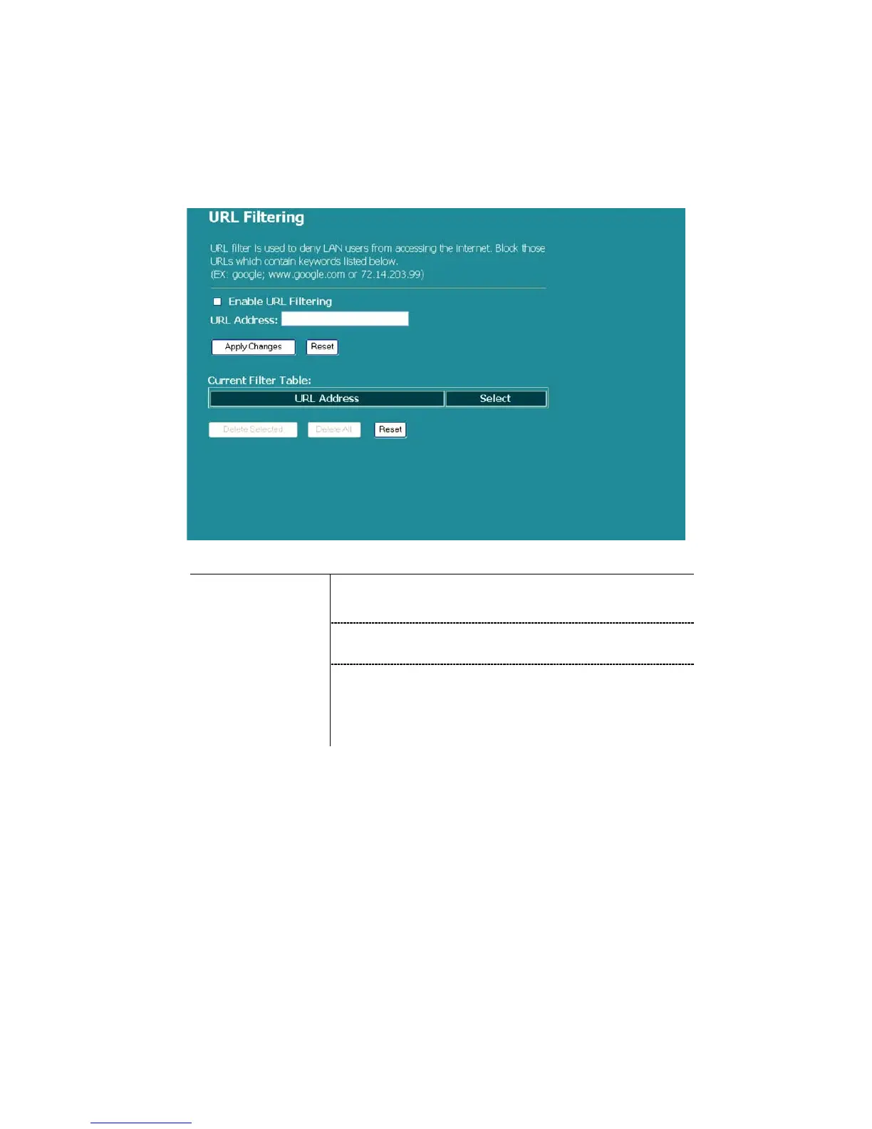 1. Click the check box of “Enable URL Filtering” to