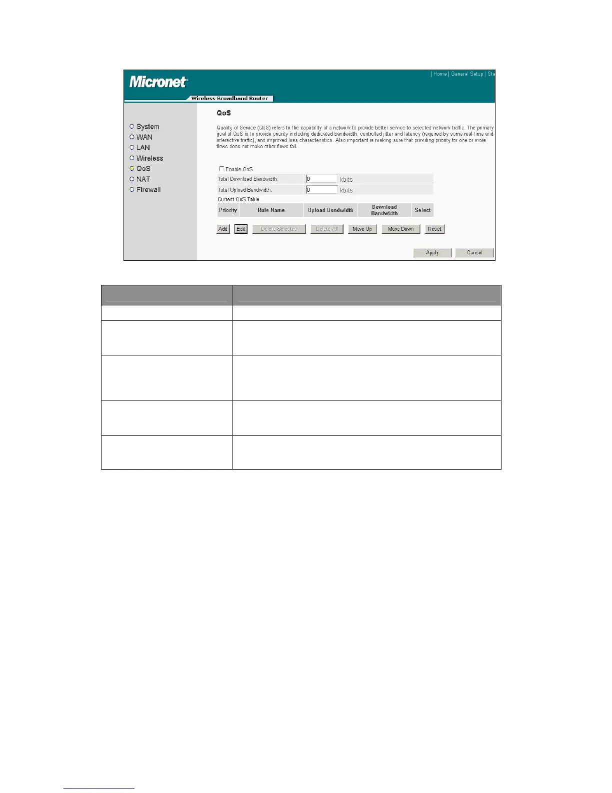 Enable/Disable QoS Allow enable or disable of QoS function.