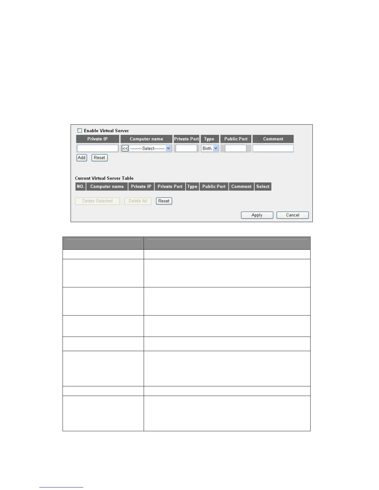 This function allows user to redirect a port on Internet IP address (on WAN port) to a