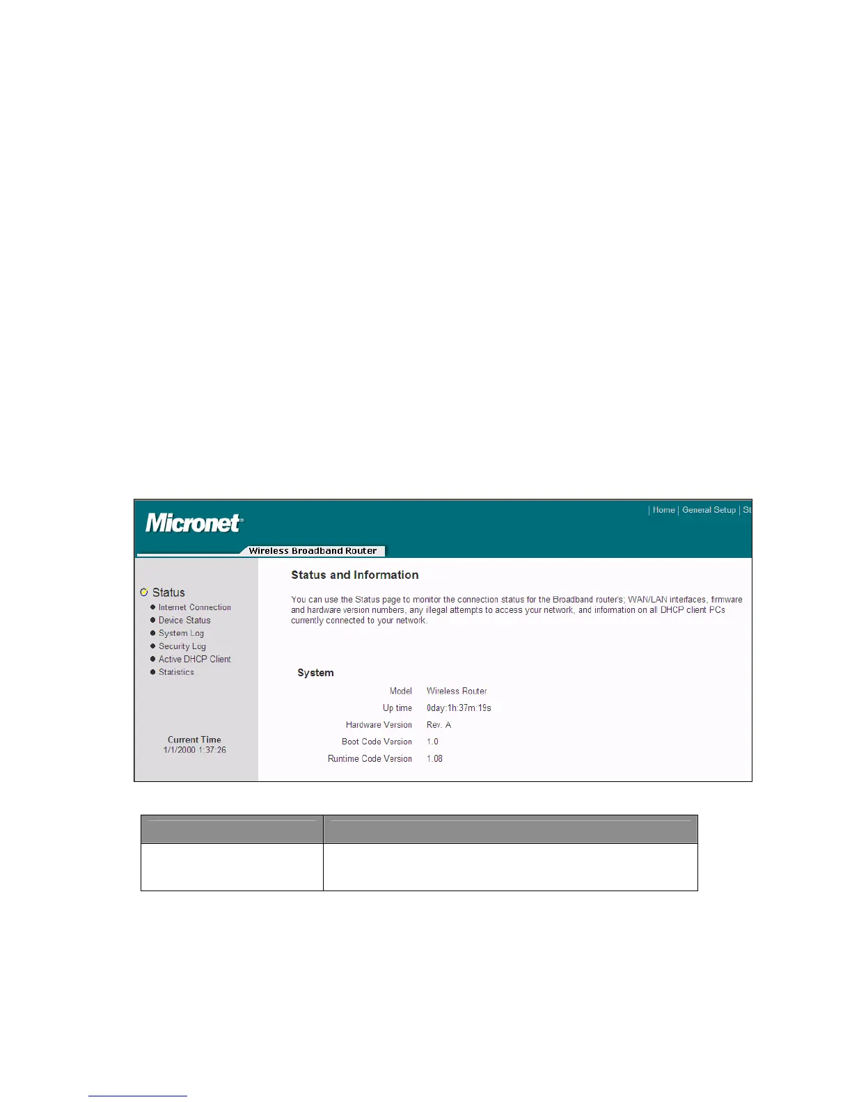 The Status and Information section allows user to view the router’s system