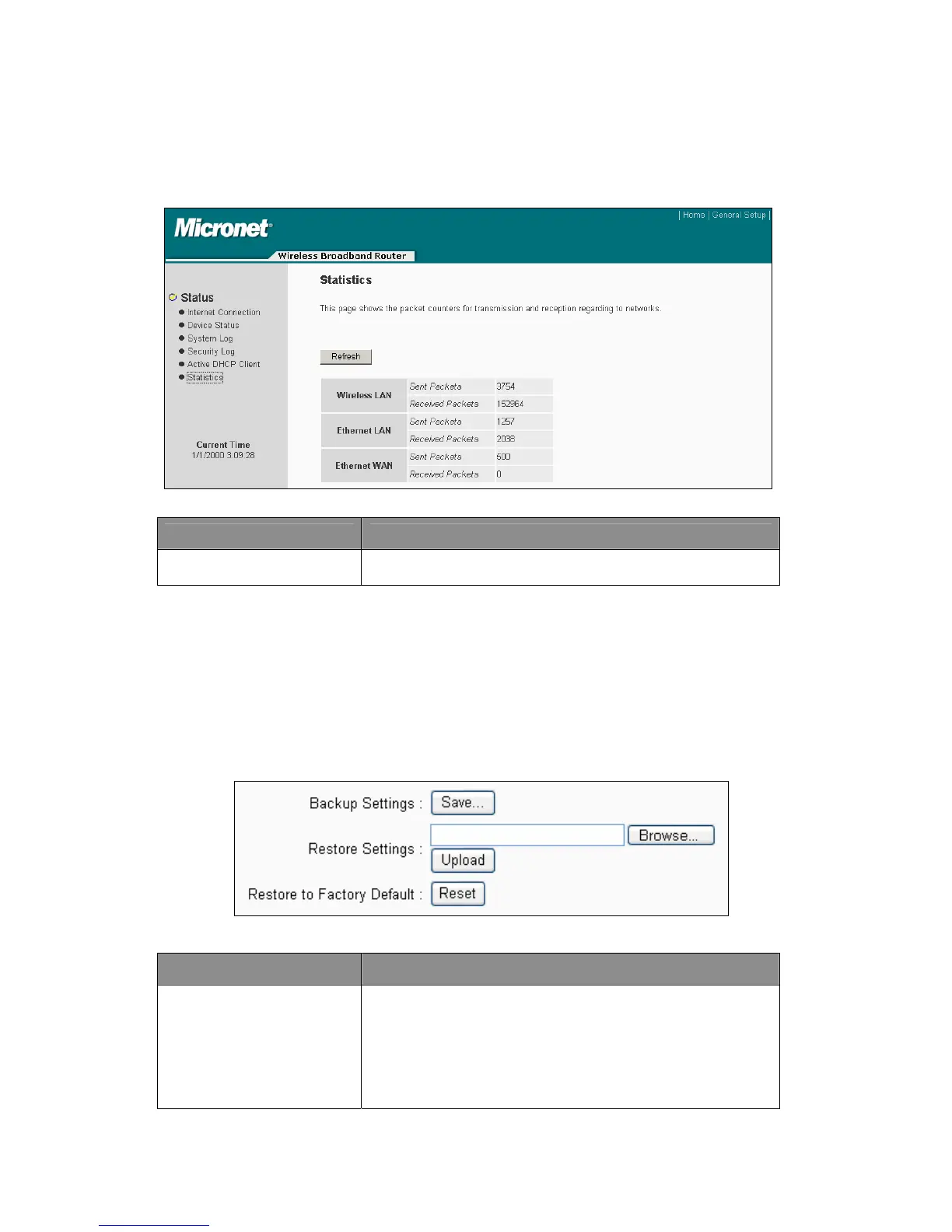 View the statistics of packets sent and received on WAN, LAN and Wireless LAN.