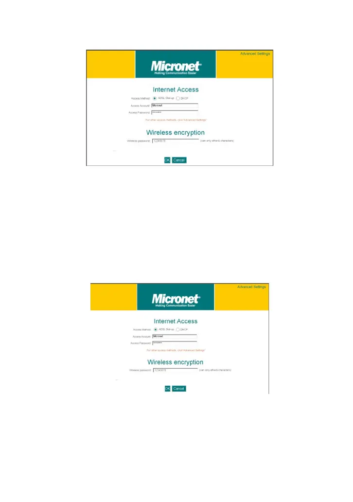access password as well as the wireless password, and then click “Ok” to