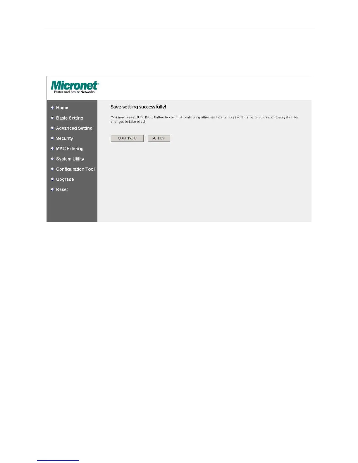 take effect. You can click “CONTINUE” button to continue other settings. You also