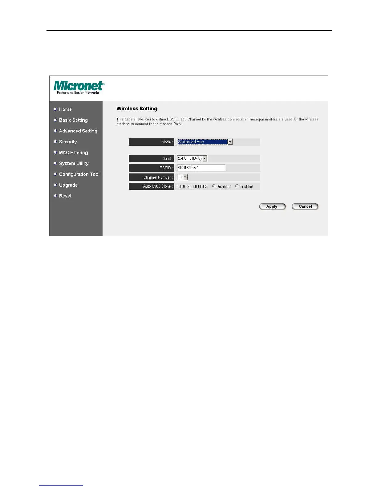 Station-Ad Hoc mode setting page: it can let your network device join a