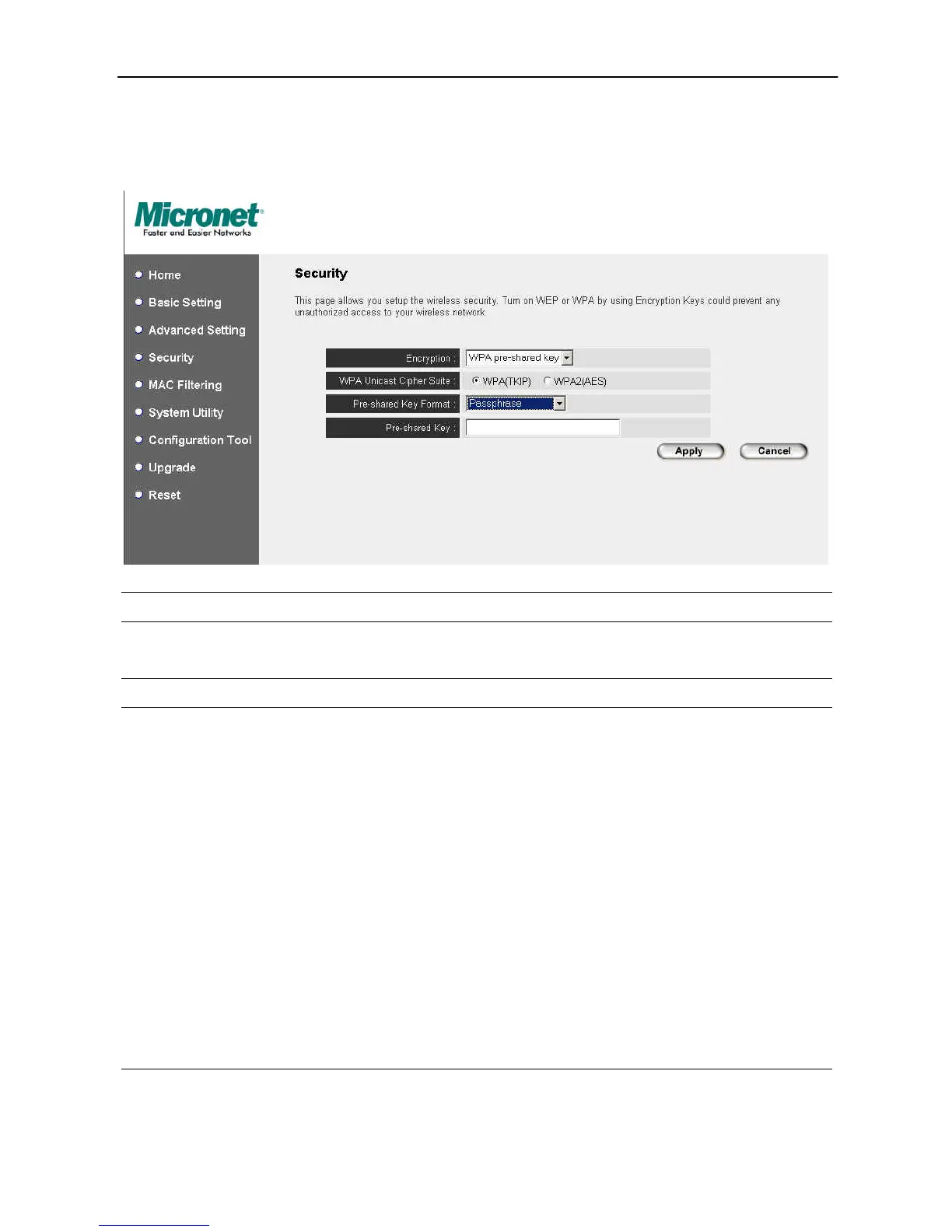 WPA(TKIP) TKIP can change the encryption key frequently to enhance the wireless LAN