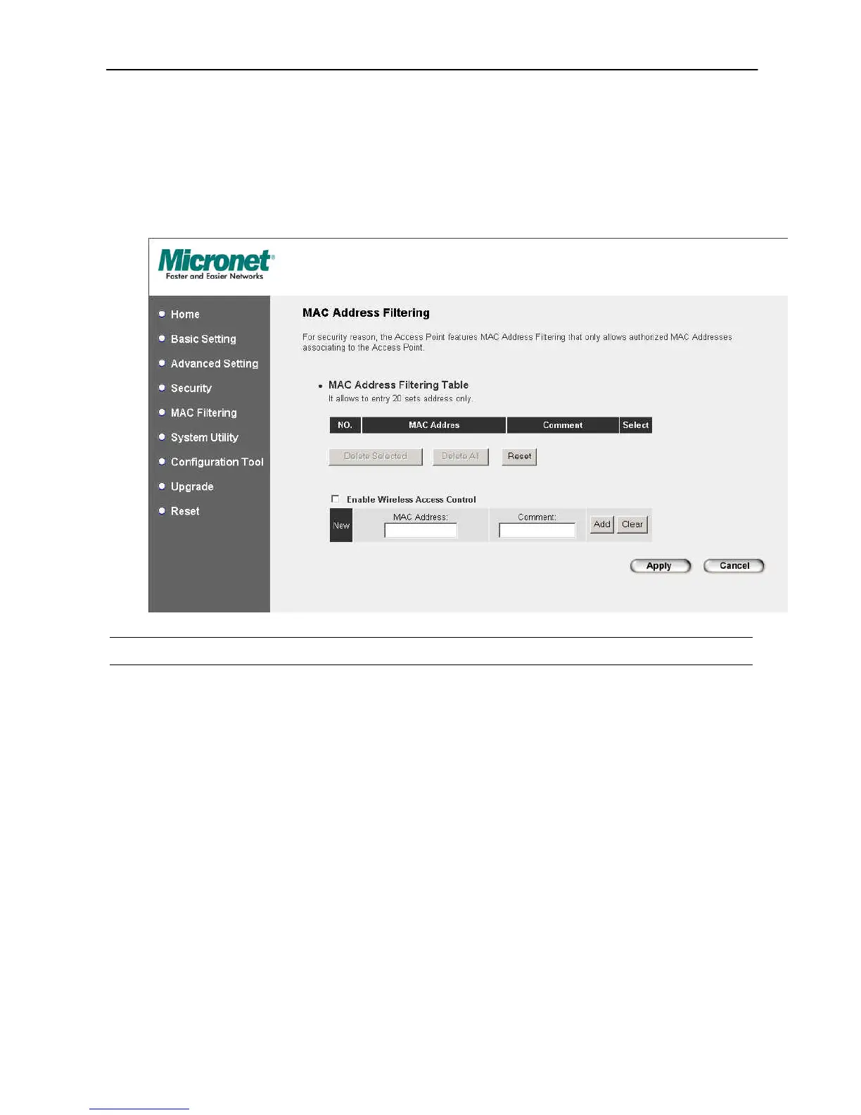 be added into the “MAC Address Filtering Table” above. If you find any typo
