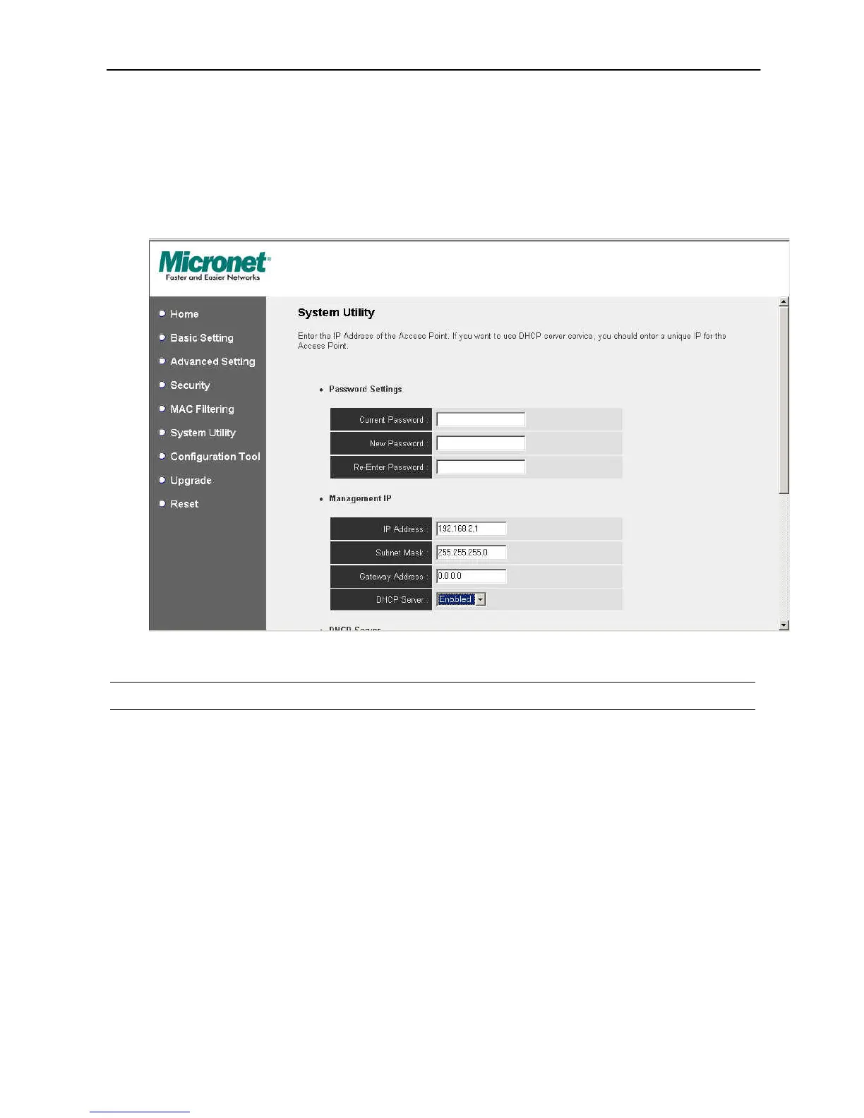 Point. The default password for the Access Point is 1234. Note that the password