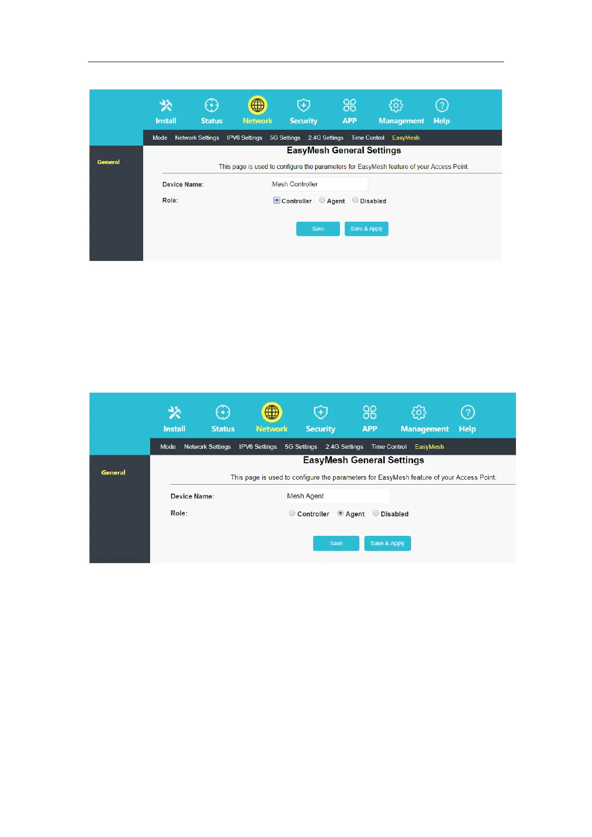 select "Network—EasyMesh—General", in the general setting page: