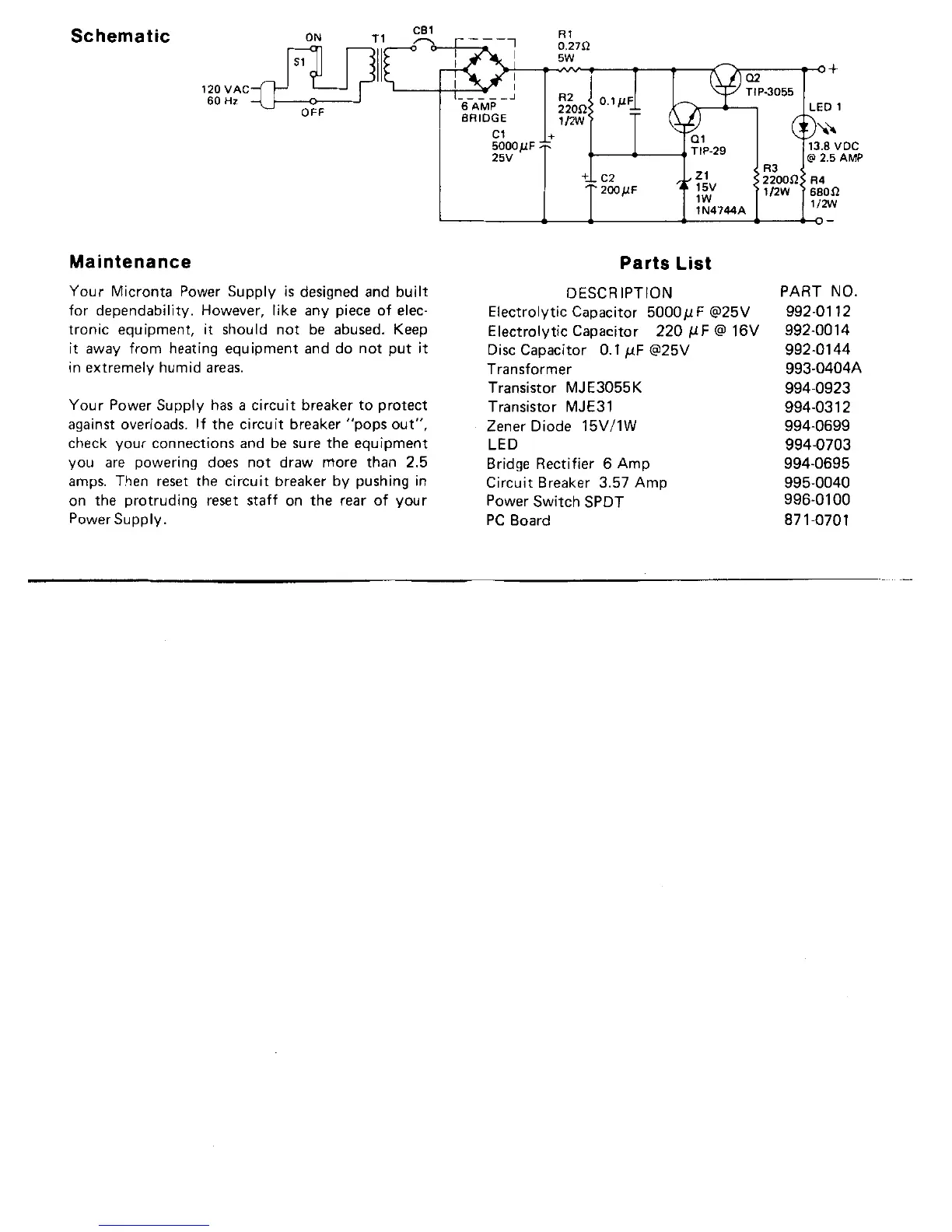 Micronta 22-124A - Technical Information; Schematic Diagram; Maintenance and Circuit Breaker