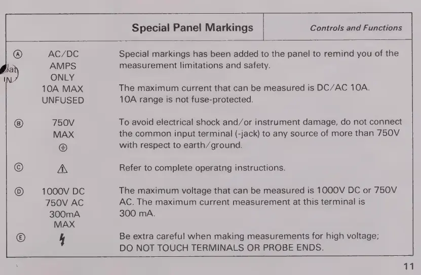 Micronta 22-185A - Special Panel Markings; Key Symbol Explanations