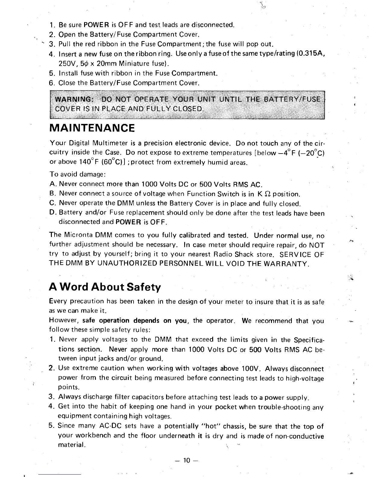 Micronta 22-191 - Safety Precautions; Safe Operating Practices