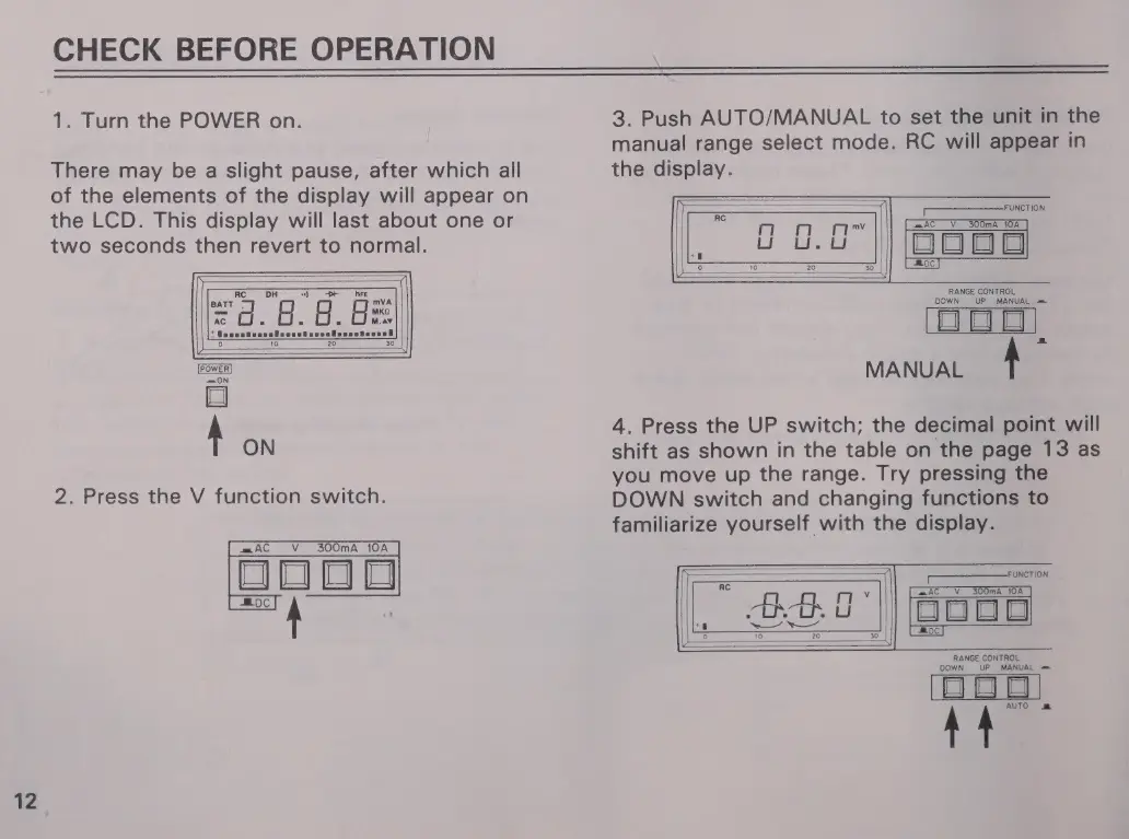 Micronta 22-195A - PRE-OPERATION CHECKLIST; Initial Power-Up and Self-Test; Practicing Range Control