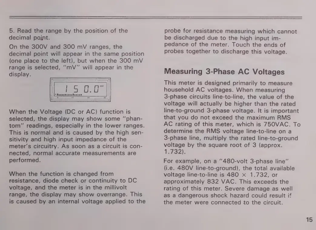 Micronta 22-195A - VOLTAGE MEASUREMENT SPECIFICS; Reading Decimal Points; 3-Phase AC Voltage Measurement