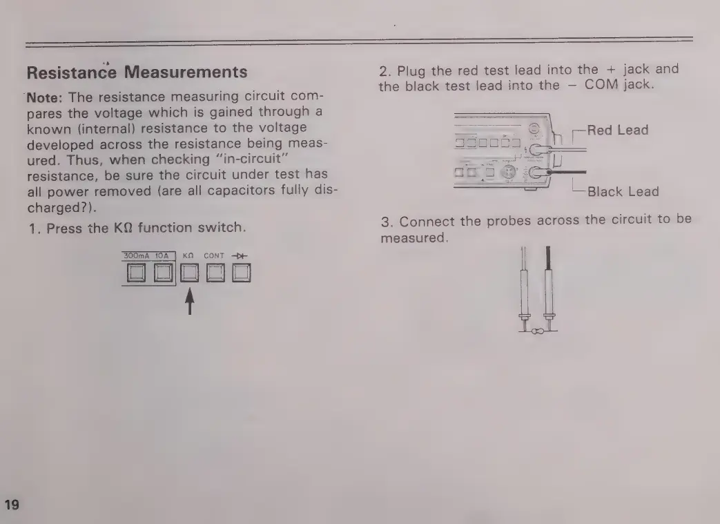 Micronta 22-195A - RESISTANCE MEASUREMENT CONNECTIONS; Connecting for Resistance Test