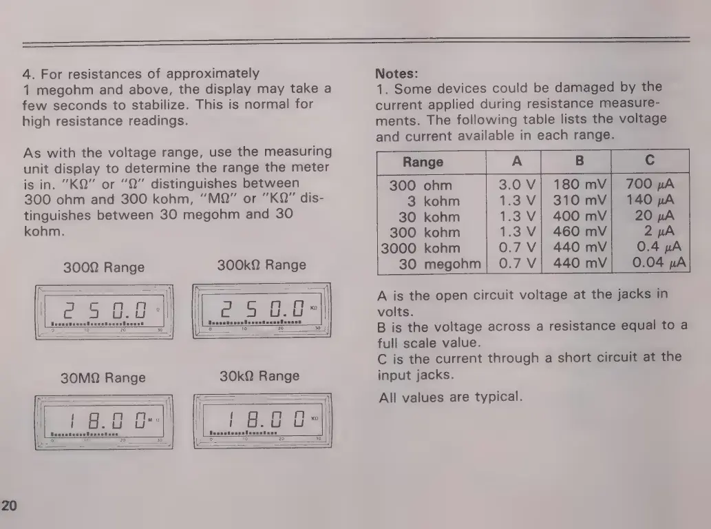 Micronta 22-195A - RESISTANCE MEASUREMENT SPECIFICS; Range Stabilization and Display; Resistance Range Notes