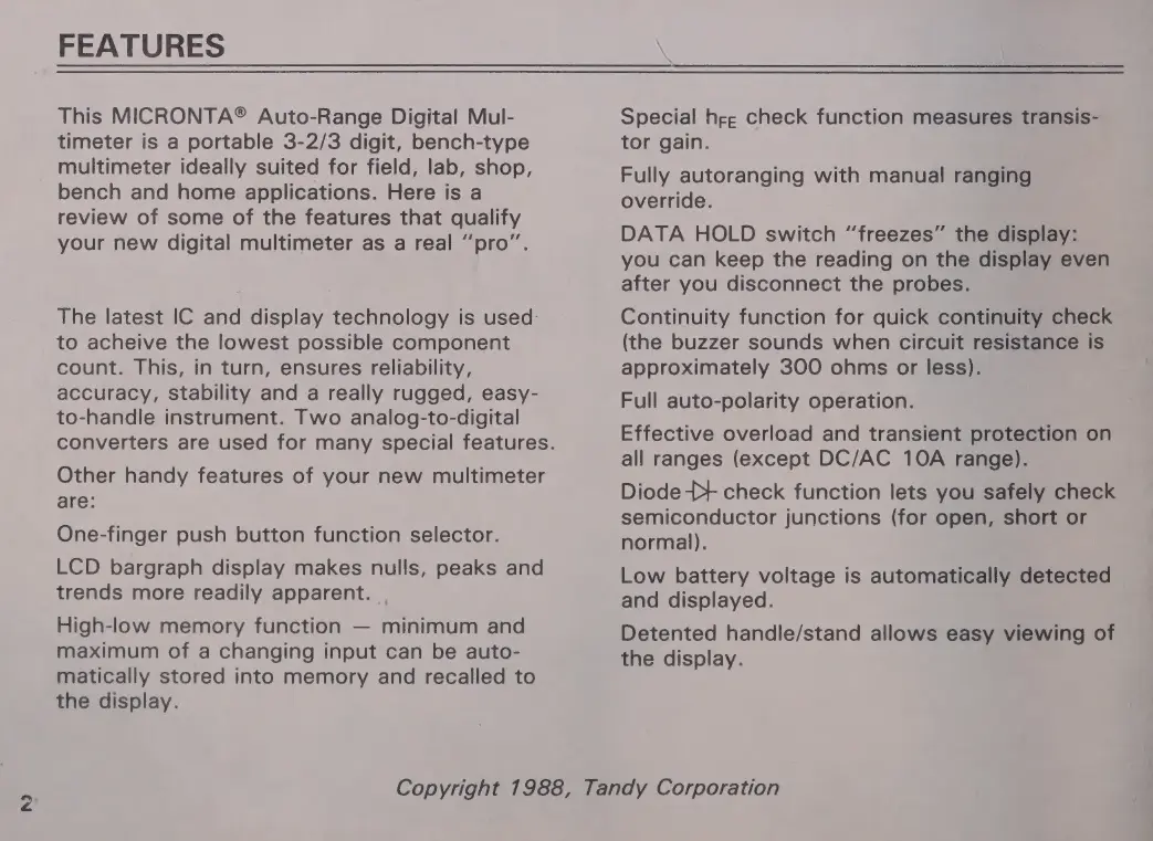 Micronta 22-195A - FEATURES AND CAPABILITIES; Product Overview and Design; Key Multimeter Functions