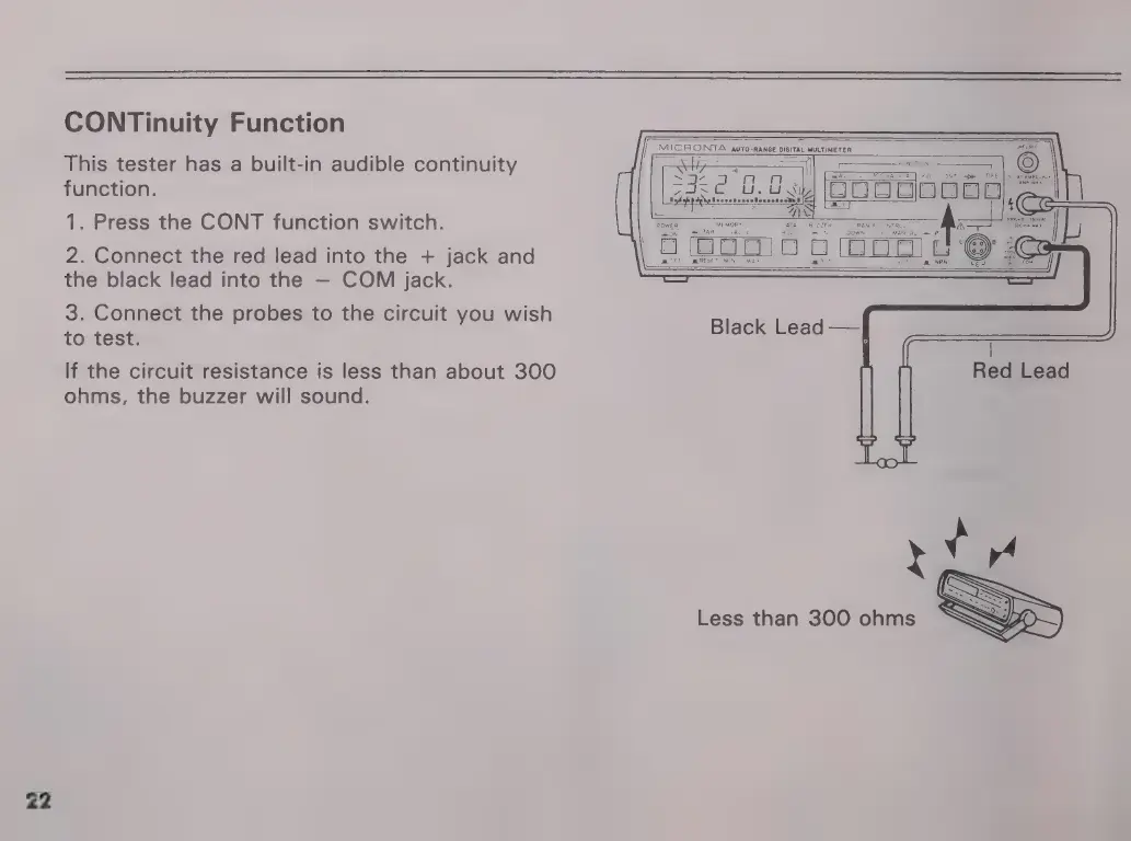 Micronta 22-195A - CONTINUITY TEST FUNCTION; Performing Continuity Test