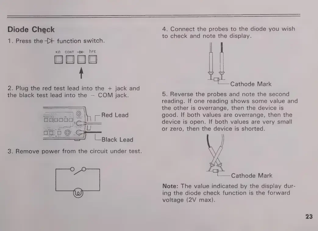 Micronta 22-195A - DIODE CHECK PROCEDURE; Diode Test Procedure