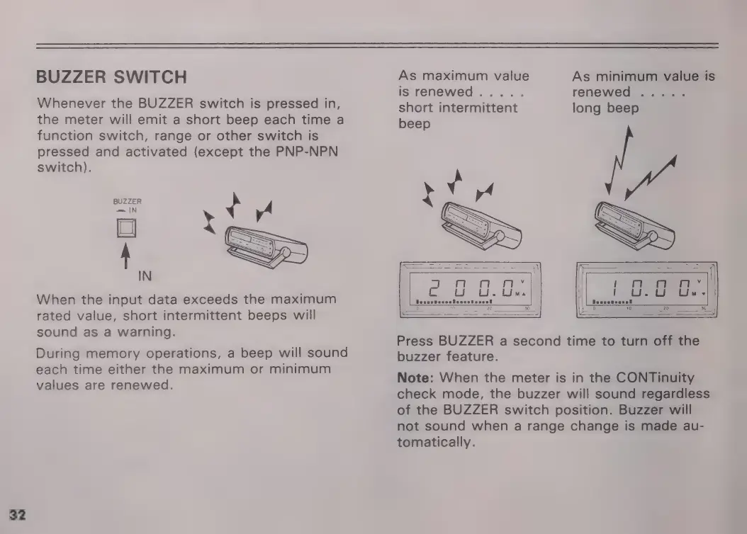 Micronta 22-195A - BUZZER SWITCH OPERATION; Buzzer Alerts and Warnings; Buzzer Behavior Notes