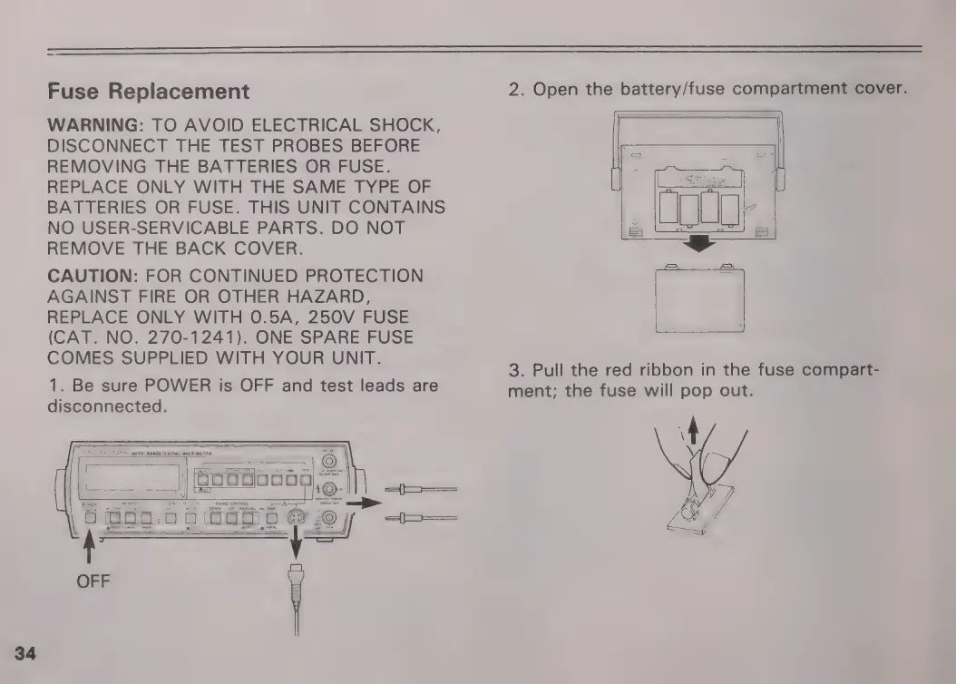 Micronta 22-195A - FUSE REMOVAL PROCEDURE; Fuse Removal Procedure