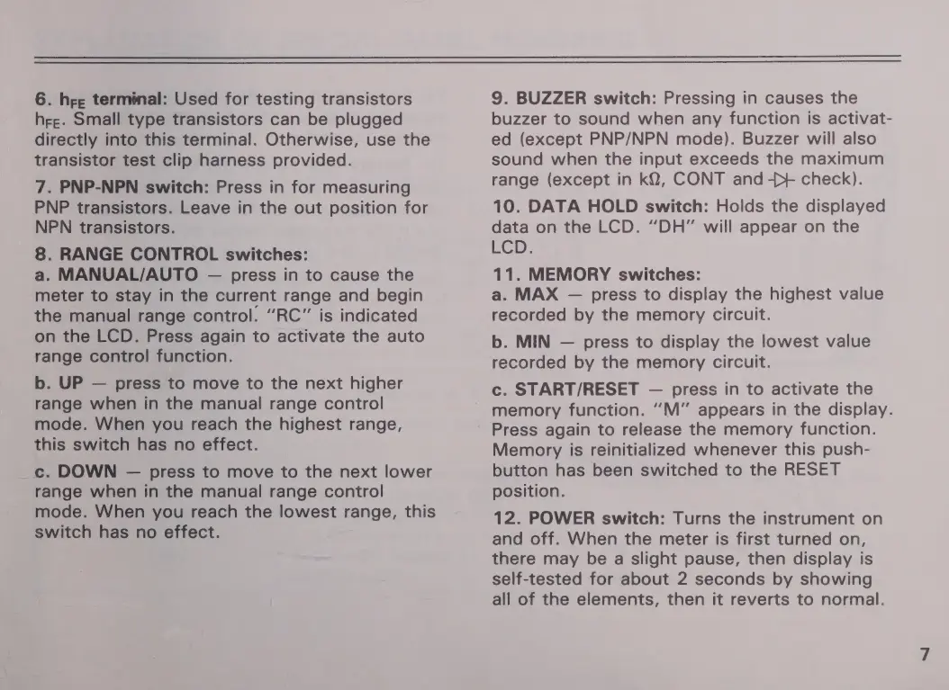 Micronta 22-195A - CONTROL SWITCHES AND TERMINALS; Transistor Measurement Terminals; Meter Control Switches