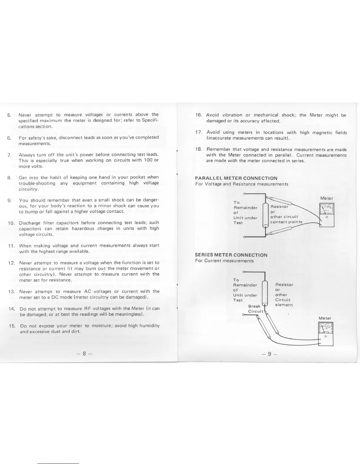 Micronta 22-201U - Parallel Meter Connection; Series Meter Connection