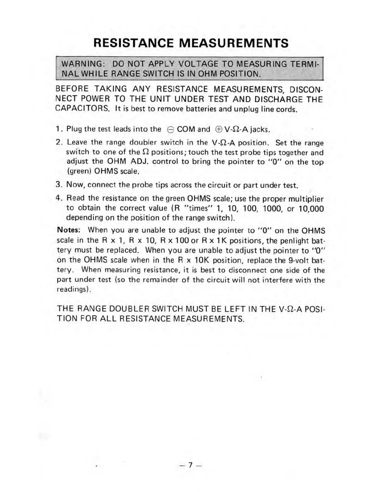 tery. When measuring resistance,