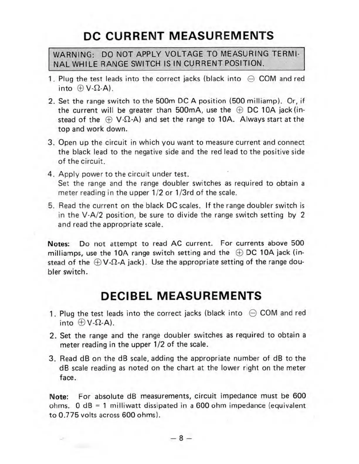 in the V-A/2 position, be sure to divide the range