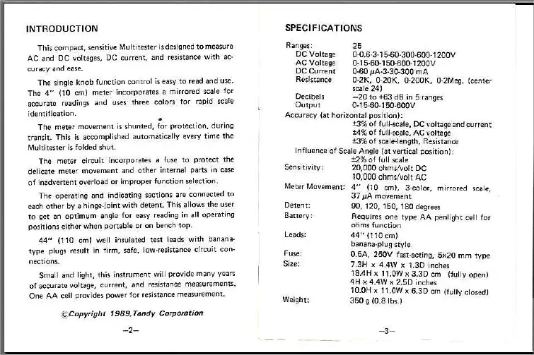 Micronta 22-211 - Introduction; Specifications