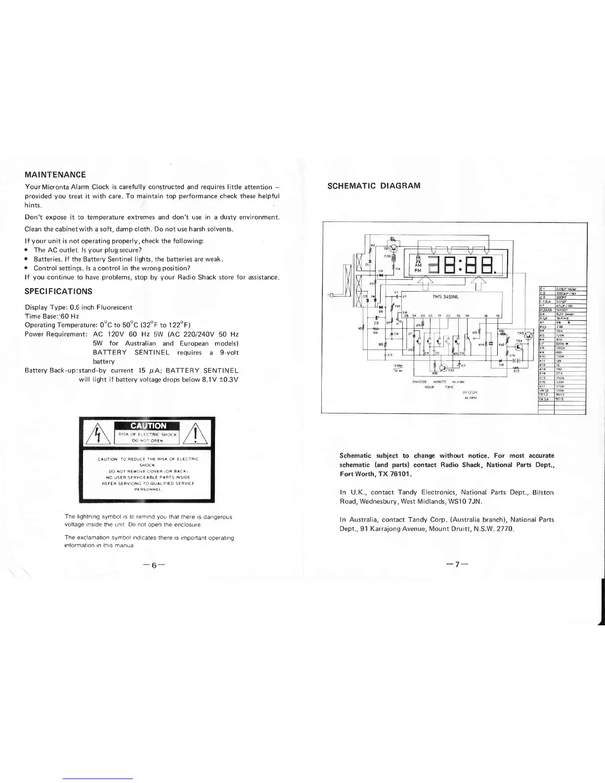 Micronta 63-753A - Specifications and Troubleshooting; Clock Specifications; Troubleshooting Common Issues