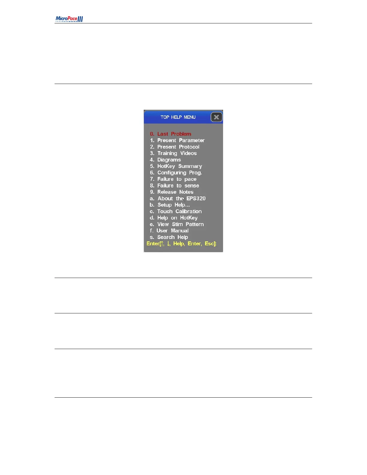 The help system has a search facility accessed from menu item “s. Search Help”.
