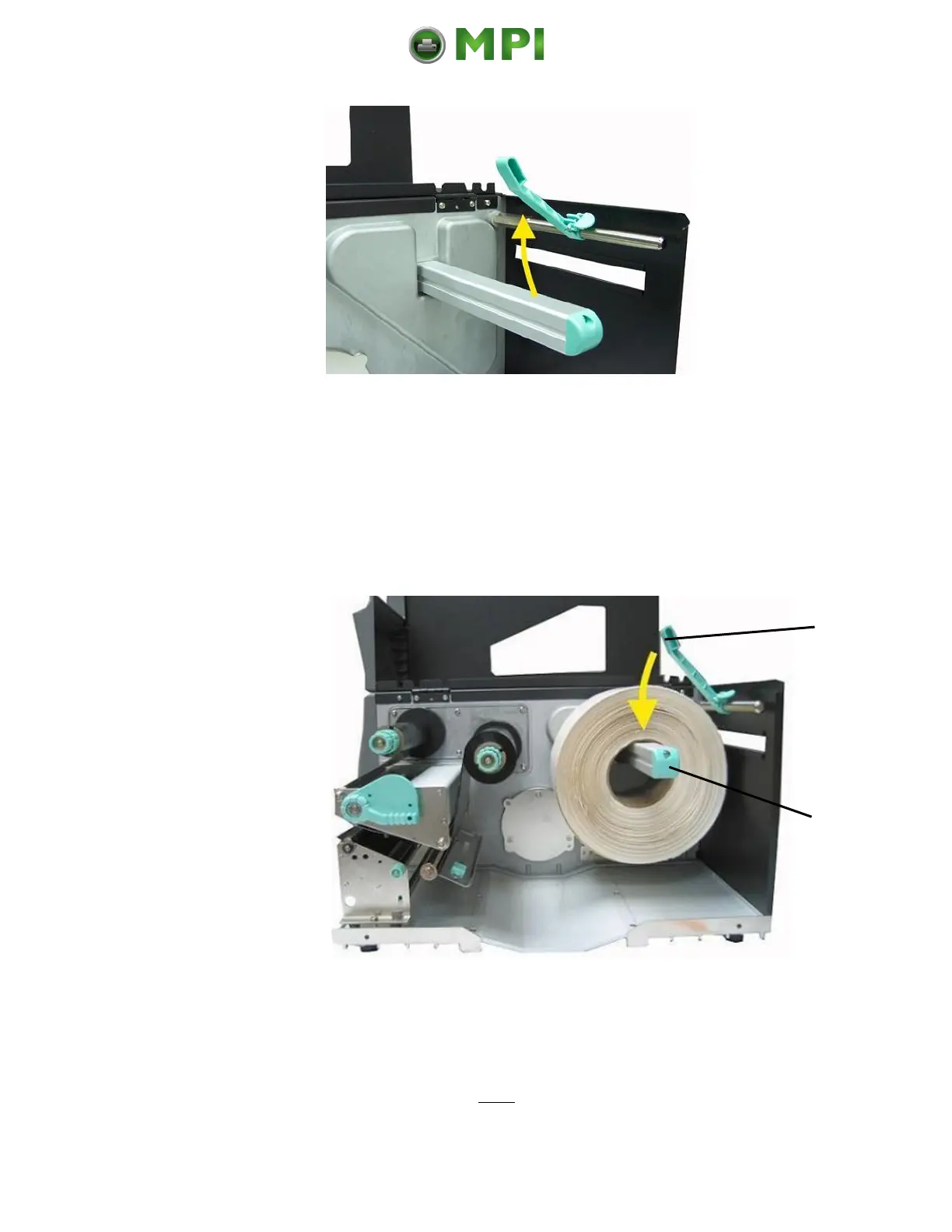7. Swivel the label supply guide downward.