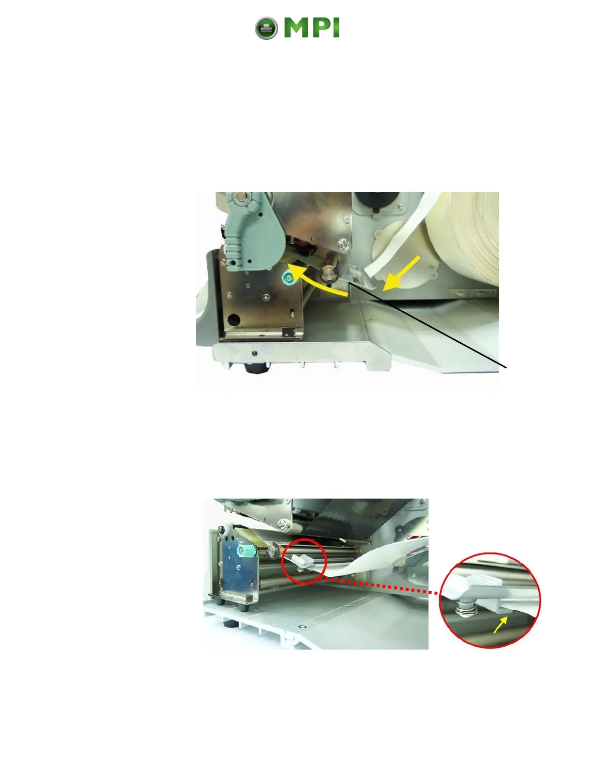 13. Feed the label through under the label tension plate (under