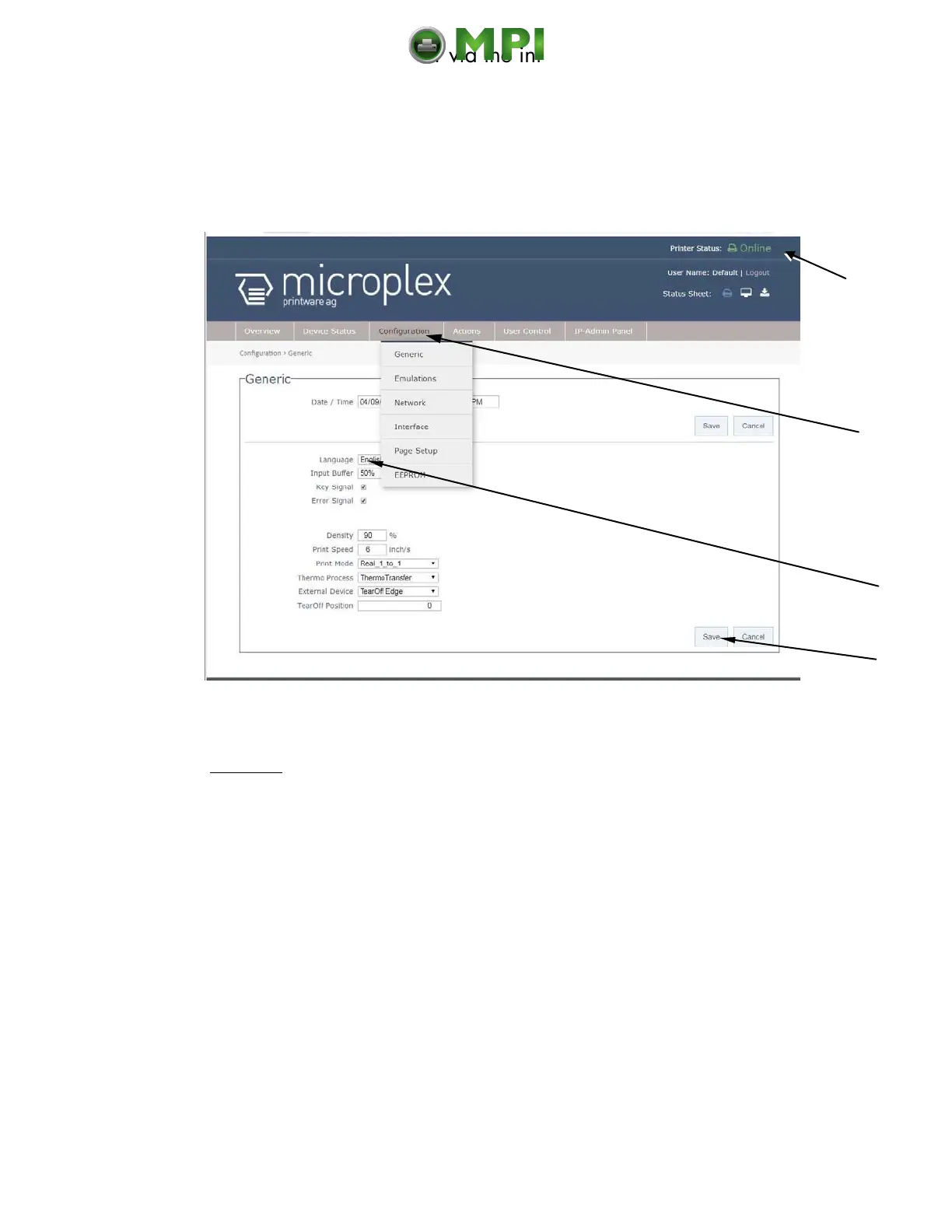 Fig. 7.3.2.a logiJET T4-2 /T6-2: Configuration Generic page of the MICROPLEX WebPanel