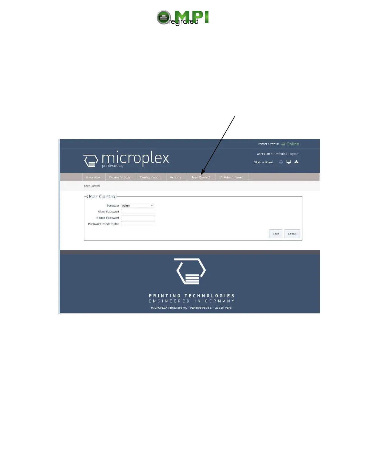 Fig. 7.3.7.a logiJET T4-2 /T6-2: User Control page of the MICROPLEX WebPanel