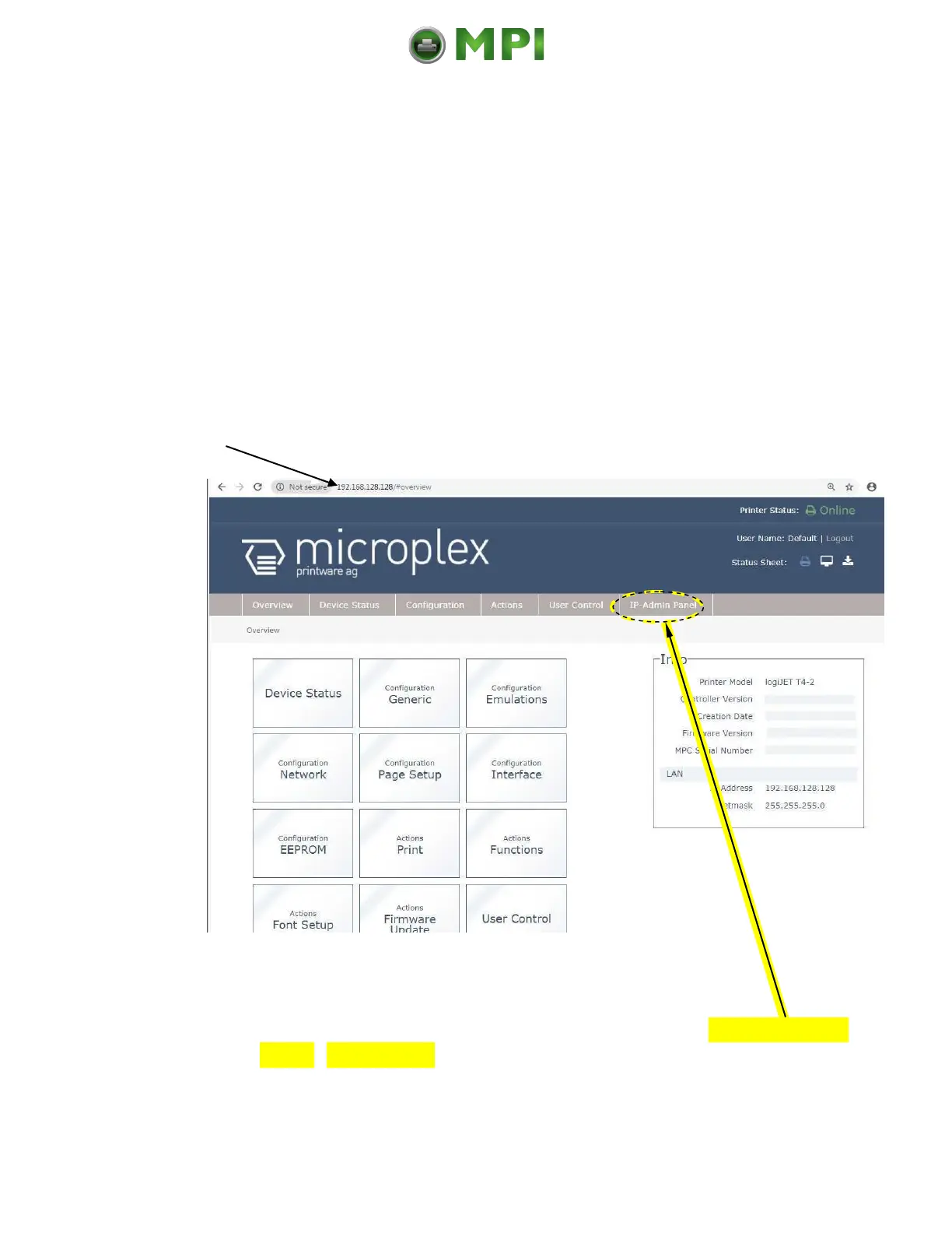 Fig. 7.4.1.a logiJET T4-2 /T6-2: Overview page of the WebPanel