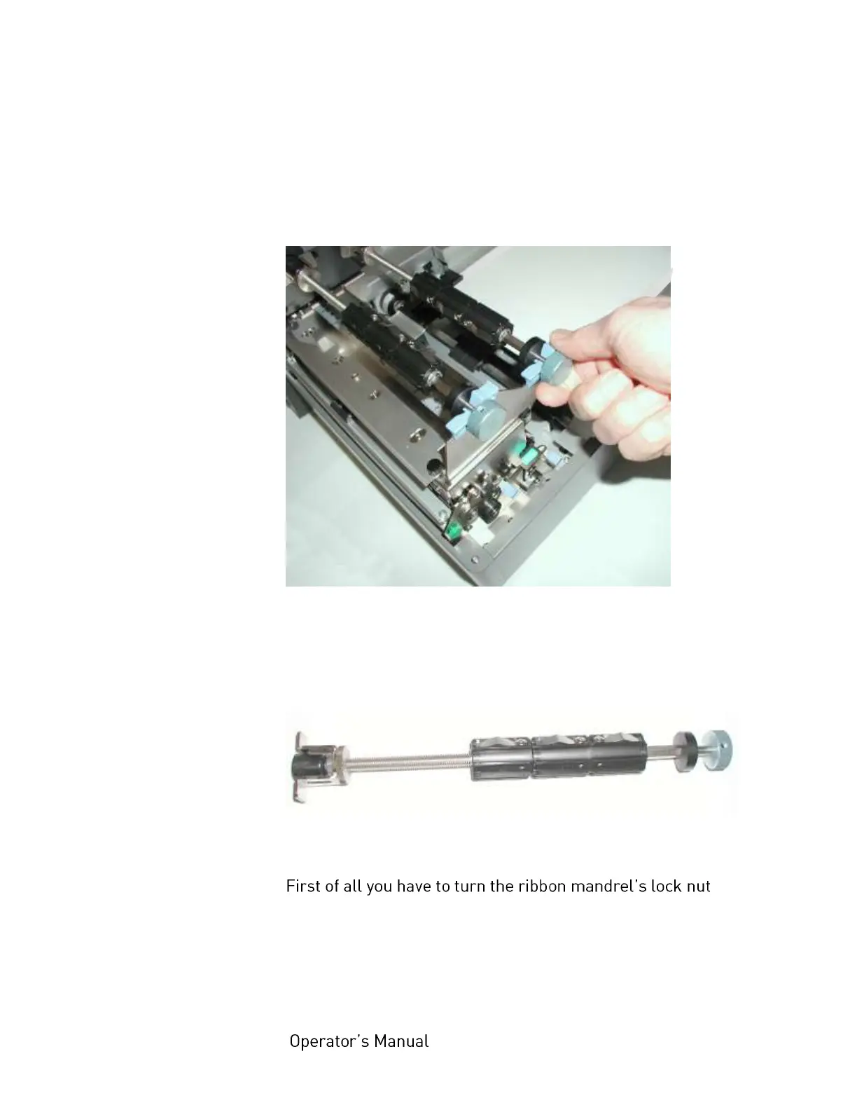 3. Take the ribbon mandrels (ribbon supply shaft and ribbon